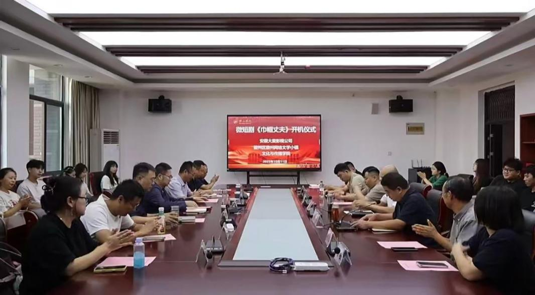 10月11日上午,威尼斯欢乐娱人城3328威尼斯欢乐娱人城3328在文澜楼320会议室举行微短剧《巾帼丈夫》开机仪式。该剧由安徽大麦影视公司投资,学院师生共同参与创作,以明代徽州女性胡重为主角,讲述她设计并主持建造宏村水系的历史故事,展现徽州文化的深厚底蕴与女性智慧。