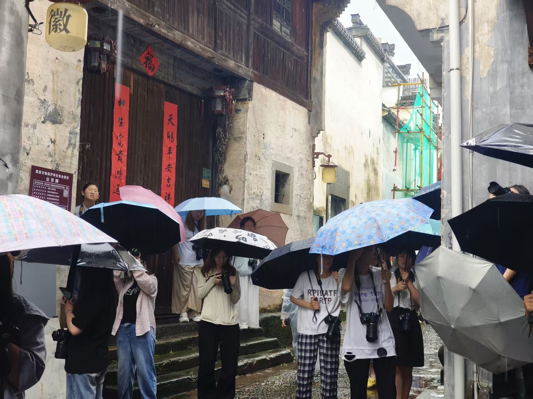 在此次实践中,同学们克服下雨天气的困难,相互帮助、切磋技艺,展现了良好的团队合作精神。同学们表示,此次实践活动提升了自己的观察与拍摄能力,加深了对徽州文化的进一步了解;在带队老师的悉心指导下,大家的摄影实践能力得到巩固提升,学会以多元视角捕捉呈现徽州文化的内涵。